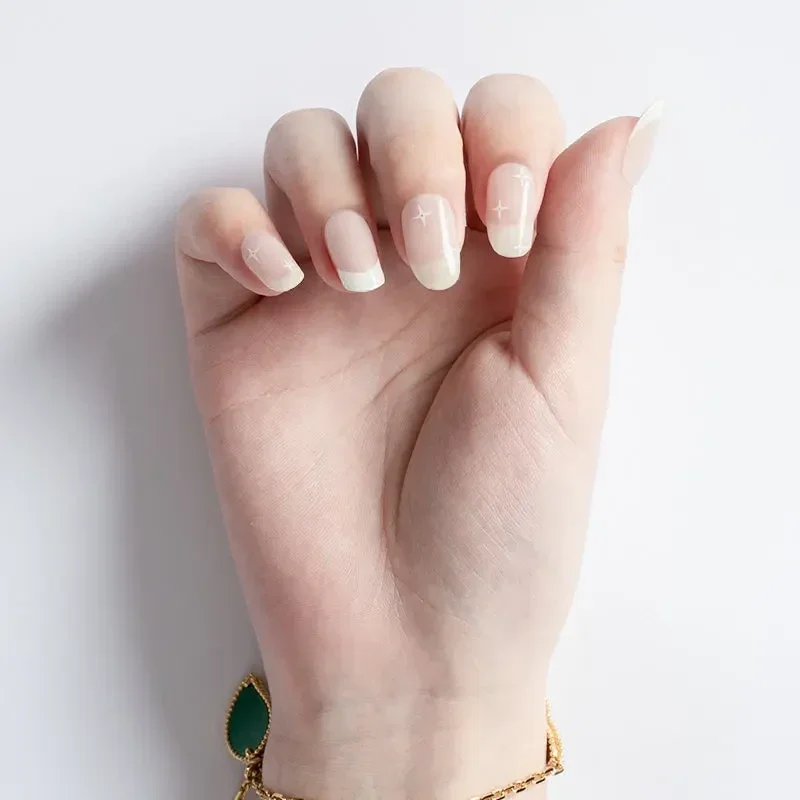 Breng een vleugje sterrenhemel naar je nagels met onze White Stars wraps! De subtiele fonkelende witte sterren op de transparante basis geven je nagels een verfijnde, magische uitstraling die perfect past bij de feestelijke sfeer. Deze wraps zorgen voor een sprankelend en elegante look zonder al te veel poespas. Maak je feestoutfit compleet met een betoverende French manicure!"