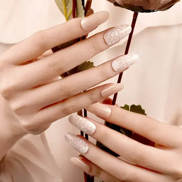 Voor een verfijnde salonlook kies je de Nude (Beige) White Flower wraps! Deze wraps hebben een egale, zachte nude kleur die je nagels een nette en elegante uitstraling geeft. Op een enkele nagel een subtiele witte bloem, die een vleugje verfijning en originaliteit toevoegt zonder te veel op te vallen. Perfect voor wie houdt van een rustige, maar toch bijzondere manicure. Deze wraps bieden een tijdloze, chique look die zowel dagelijks als voor speciale gelegenheden ideaal is.
