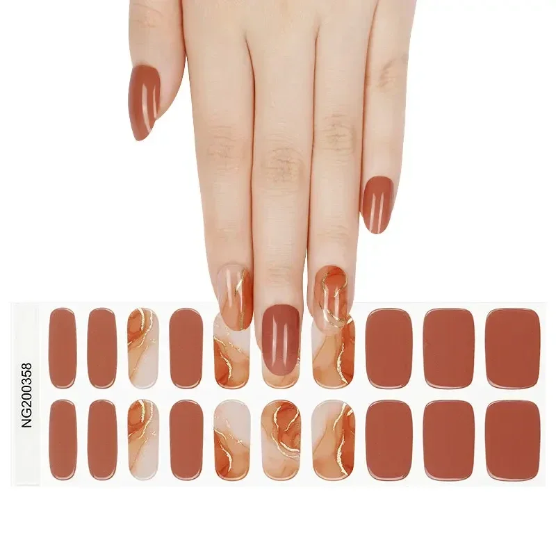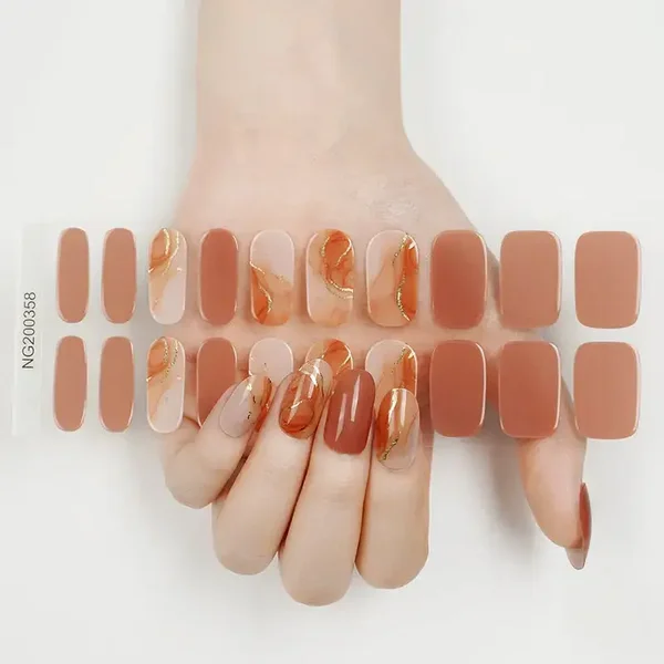 Marble Brown Gold gel nail wraps bieden een elegante combinatie van marmerachtig bruin en luxe gouden accenten. Het stijlvolle design voegt een verfijnde en chique uitstraling toe aan je nagels, perfect voor wie houdt van een moderne, maar tijdloze look. Kies voor Marble Brown Gold voor een luxe manicure met een vleugje glamour.