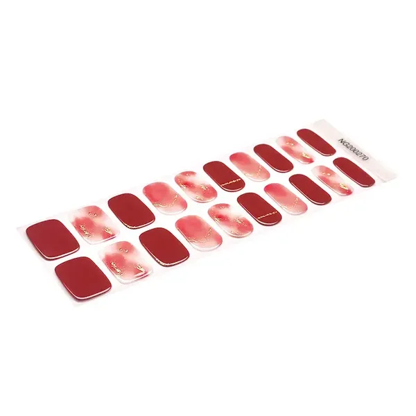 De Burgundy Marble gel nail wraps combineren diep bordeauxrood met subtiele lichte rode en crème tinten, verweven met hier en daar gouden marmeraccenten. Dit elegante design zorgt voor een verfijnde en luxueuze uitstraling die perfect past bij elke gelegenheid. Een tijdloze en chique look die jouw nagels een onweerstaanbare charme geeft.