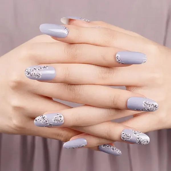 Bleu Blossom is meer dan een nagelwrap; het is een subtiel kunstwerk. Met een serene grijsblauwe basis en een verfijnde witte bloesemtak transformeert deze wrap je nagels in een elegante canvas.